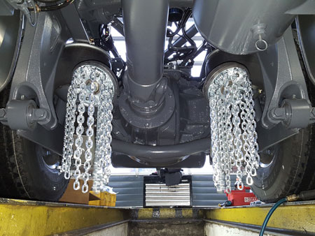 Rotachain wird vom Fahrerhaus zugeschaltet. Dies kann sowohl während der Fahrt bei max. 20 km/h, als auch im Stand erfolgen. Beim Durchdrehen der Reifen werden die Kettenstränge unter die Antriebsräder geschleudert. Ab ca. 3 km/h Fahrgeschwindigkeit erhält man Grip unter den Rädern. Mit Rotachain erreichen Sie sowohl bei Vorwärts- als auch bei Rückwärtsfahrt den erforderlichen Grip und können, abhängig von den Straßenverhältnissen, eine Geschwindigkeit von bis zu 50 km/h fahren.